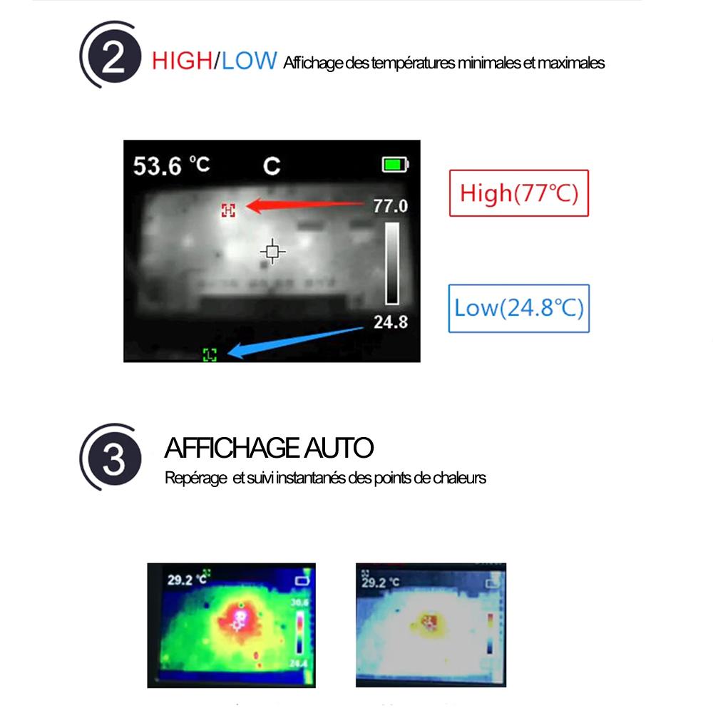 La caméra détecte et suit automatiquement les points chauds et froids, vous permettant de localiser instantanément les anomalies thermiques sans effort.